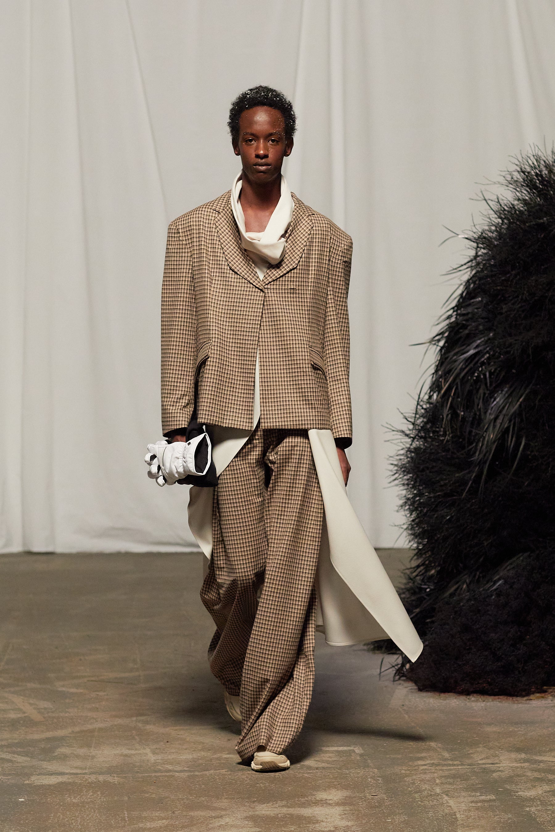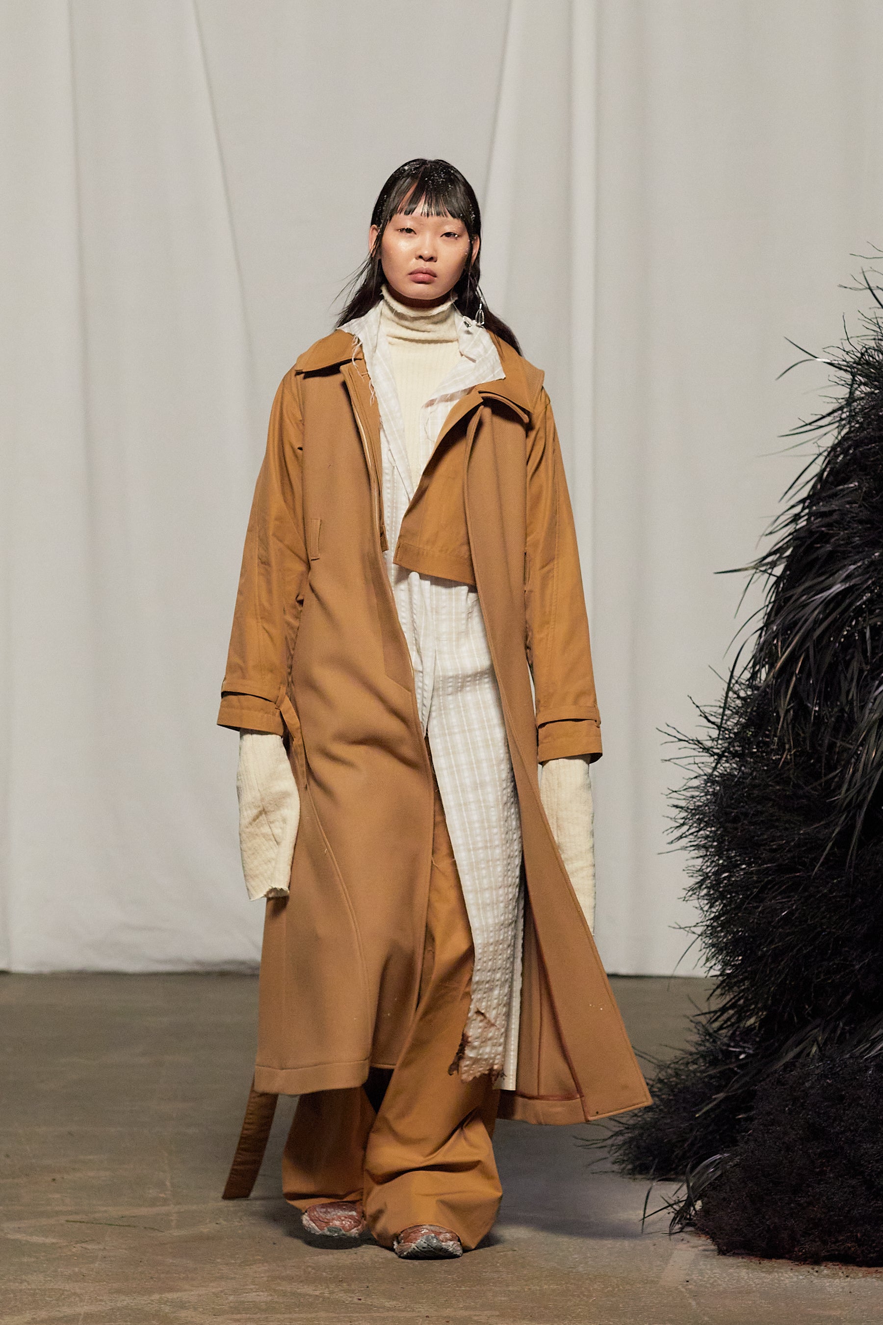 This collection reimagines power dressing in the context of a changing climate, celebrating the art of layering (Zwiebellagen Look) as an essential style statement that allows wearers to transition to the unpredictable weather throughout the season.